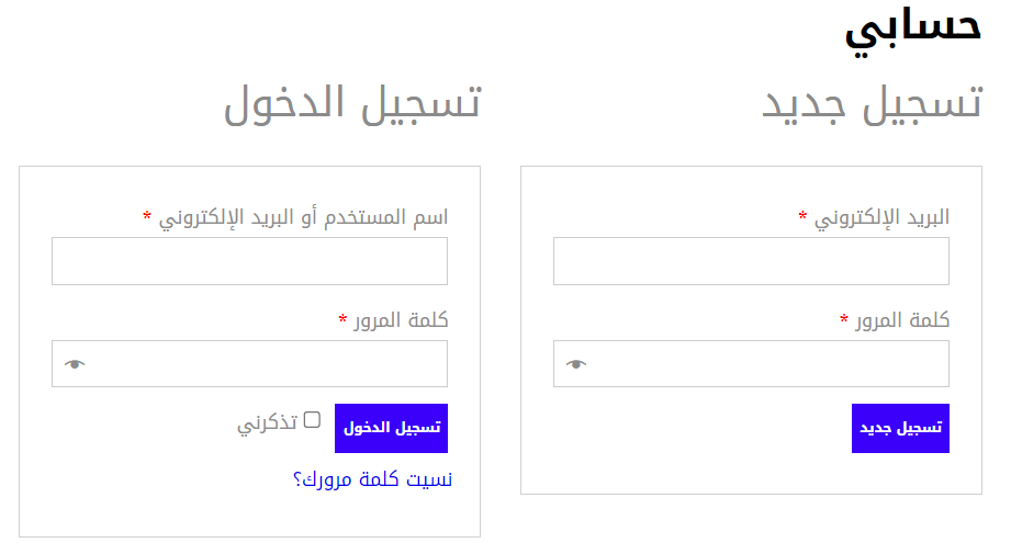 * إذا نسيت كلمة المرور يمكنك الضغط على يمكنك الضغط على “نسيت كلمة مرورك؟” وادخال بياناتك وسيتم إرسالها عبر البريد الإلكتروني.