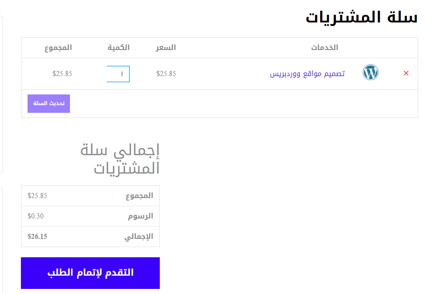 تأكد من سلة مشترياتك ثم اضغط على زر “التقدم لإتمام الطلب”: